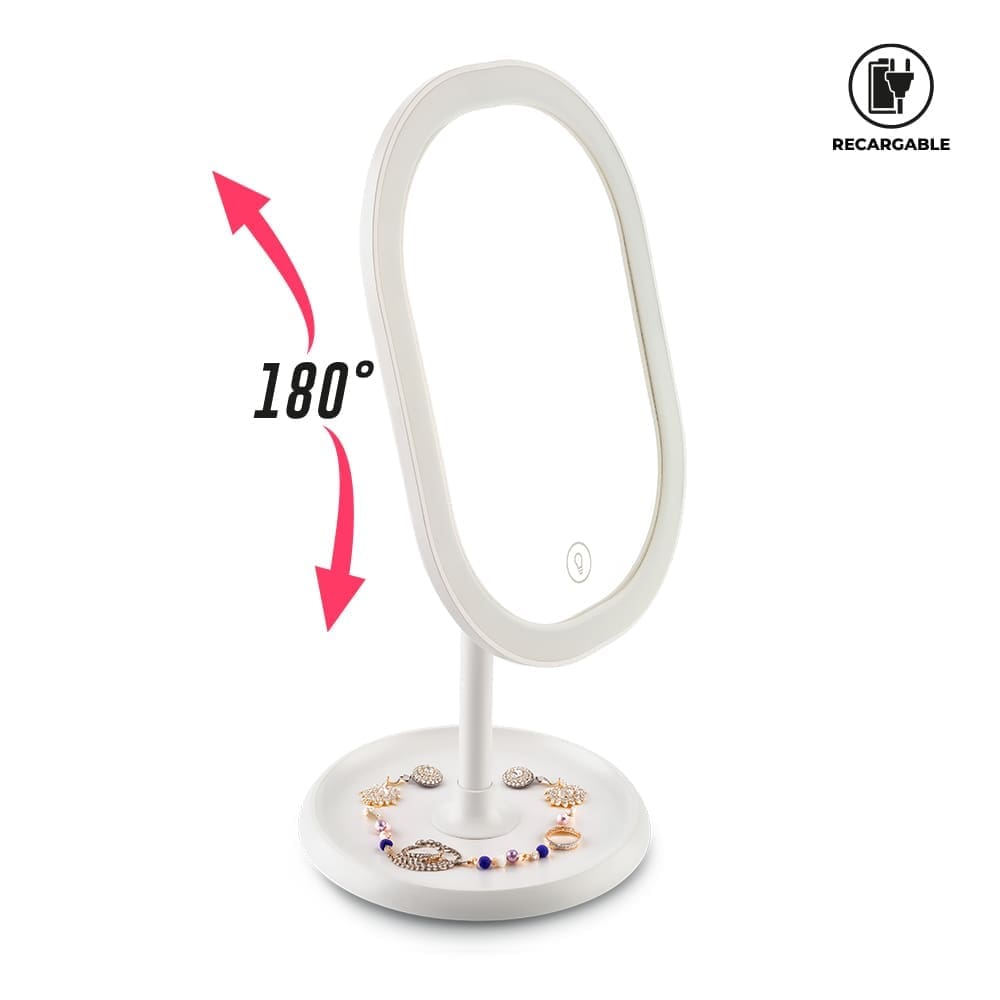 Espejo plástico con luz led y base. Con batería recargable de 1000mAh. Tres modos de luz. El espejo rota 180° hacia adelante y hacia atrás. Incluye cable Tipo C para carga. Empaque caja individual. Medidas: 26 cm x 13 cm diámetro de la base. Marca: 4 cm / Tampografía. | ✅ Regalos empresariales personalizados con tu logo mediante tampografía, sublimación o grabado láser. ⚠️ El costo de marca se suma al precio del producto según la técnica de personalización elegida — puedes cotizarlo en línea directamente en markmelo.com. Envíos a Bogotá, Medellín, Cali, Barranquilla y todo Colombia.