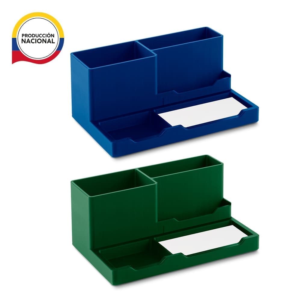 Organizador de escritorio plástico. Incluye taco de papel de 100 hojas. Medidas: 18 cm x 12 cm x 8.8 cm. Marca: 4 cm / Tampografía.