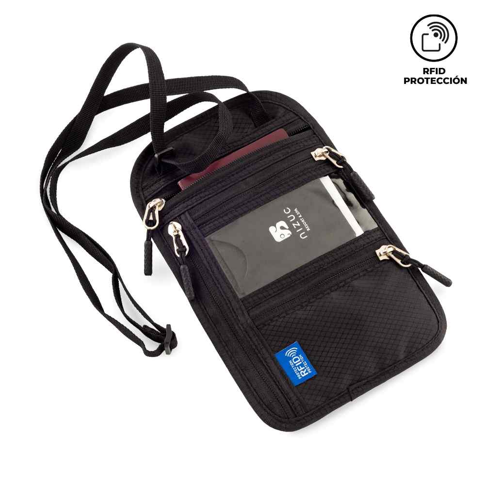 Portadocumentos para viaje en lona poliester, con 4 bosillos externos con cremallera y un bolsillo en la parte posterior. Su material interno permite bloquear las señales electromagnéticas RFID (Radio Frequency Indentification) que se usan en tarjetas de chip, pasaportes, tarjetas electrónicas de transporte, etc. Medidas: 24 cm x 15 cm. Marca: 5 cm / Screen. | ✅ Regalos empresariales personalizados con tu logo mediante tampografía, sublimación o grabado láser. ⚠️ El costo de marca se suma al precio del producto según la técnica de personalización elegida — puedes cotizarlo en línea directamente en markmelo.com. Envíos a Bogotá, Medellín, Cali, Barranquilla y todo Colombia.