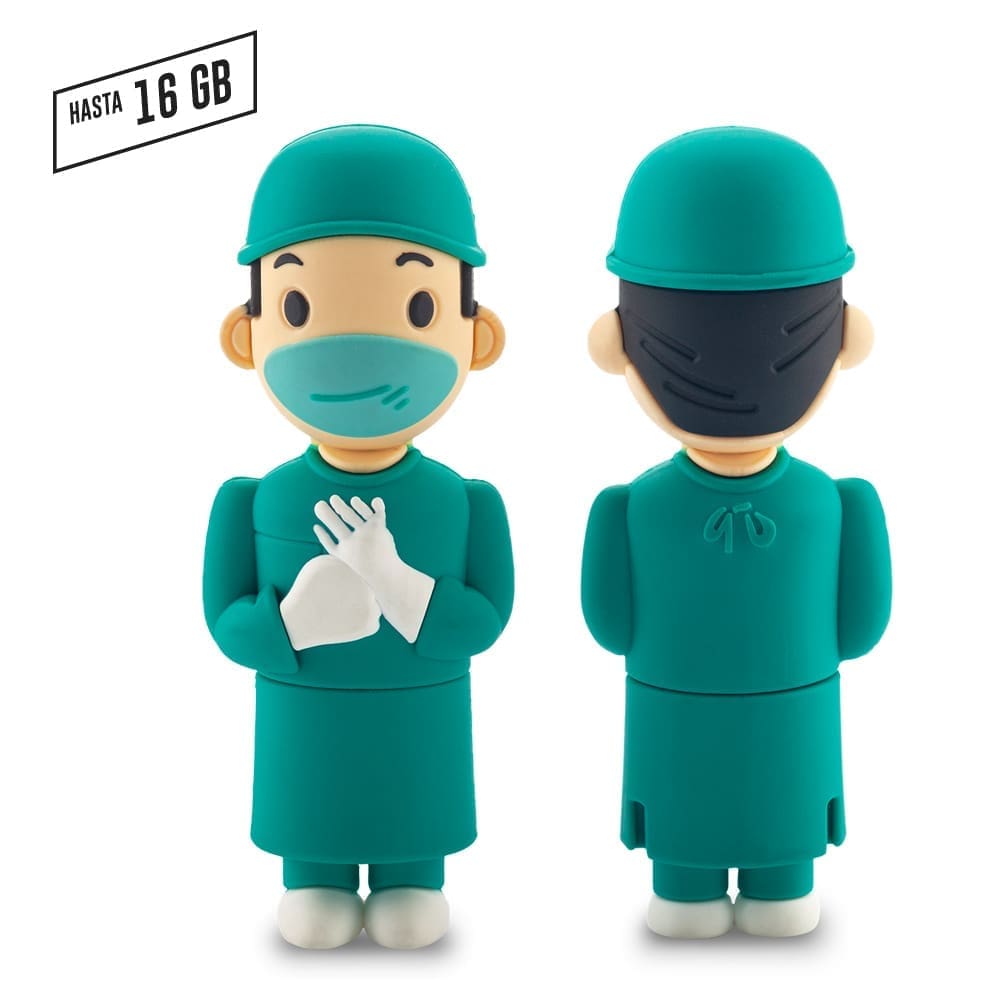 USB en PVC con forma de doctor, doctora y cirujano. Medidas: Doctor: 7.5 cm x 3.5 cm x 1.5 cm Cirujano / Doctora: 8 cm x 3 cm x 2.5 cm Marca: 1.5 cm / Tampografía Capacidad: 8 GB / 16 GB NOTA: Los tamaños de las memorias USB expresado en GB son aproximados, debido a que la capacidad de almacenamiento (que muestran en el empaque) está expresada en el sistema decimal. Tabla de Espacio Real Memoria de 4 GB en realidad contendrá 3,75 GB Memoria de 8 GB en realidad contendrá 7,23 GB Memoria de 16 GB en realidad contendrá 14,9GB Memoria de 32 GB en realidad contendrá 29,8 GB | ✅ Regalos empresariales personalizados con tu logo mediante tampografía, sublimación o grabado láser. ⚠️ El costo de marca se suma al precio del producto según la técnica de personalización elegida — puedes cotizarlo en línea directamente en markmelo.com. Envíos a Bogotá, Medellín, Cali, Barranquilla y todo Colombia.